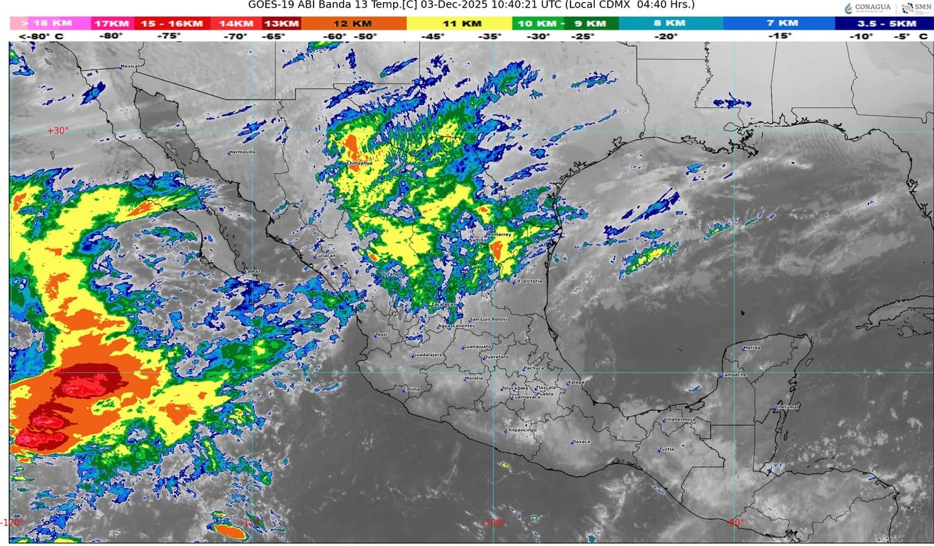 🔸La aproximación de un sistema frontal al noroeste y norte del país provocará lluvias en varias entidades.